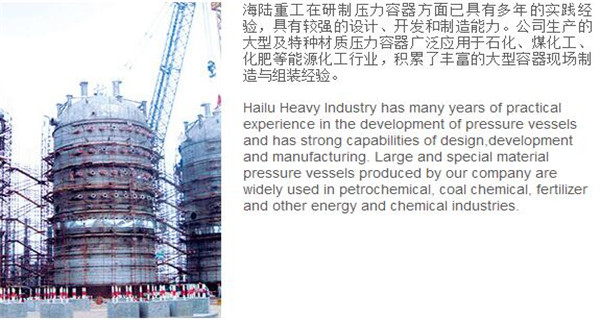 蘇州海陸重工股份有限公司位于江蘇省張家港市開(kāi)發(fā)區(qū),是國(guó)內(nèi)一流的節(jié)能環(huán)保設(shè)備的專業(yè)設(shè)計(jì)制造企業(yè),目前并已初步形成鍋爐產(chǎn)品、大型壓力容器、核電設(shè)備、低溫產(chǎn)品、環(huán)保工程共同發(fā)展的業(yè)務(wù)格局。公司創(chuàng)建于1956年,注冊(cè)資本51640萬(wàn)元,占地面積近50萬(wàn)平米。公司下設(shè)八個(gè)控股子公司,一個(gè)余熱鍋爐研究所,在瑞士、北京、武漢、南京、上海、杭州、廣州等地設(shè)立分支機(jī)構(gòu),擁有雄厚的研發(fā)實(shí)力。公司秉承“科技領(lǐng)航、業(yè)界先鋒”的發(fā)展理念,注重研究廢熱、余熱利用和環(huán)境保護(hù)相結(jié)合的新技術(shù)研發(fā),自主設(shè)計(jì)能力居同行前列;公司承擔(dān)過(guò)國(guó)家863計(jì)劃,江蘇省科技成果轉(zhuǎn)化專項(xiàng)資金,榮獲國(guó)家科技進(jìn)步二等獎(jiǎng),產(chǎn)品擁有核心自主知識(shí)產(chǎn)權(quán)并取得專利50多項(xiàng);公司推行國(guó)際先進(jìn)的管理體系標(biāo)準(zhǔn)和認(rèn)證,擁有 A級(jí)鍋爐制造許可證,A1、A2、A3級(jí)壓力容器設(shè)計(jì)和制造許可證,取得了民用核承壓設(shè)備制造資格許可證、美國(guó)機(jī)械工程師學(xué)會(huì)(ASME)“S”、“U”鋼印,通過(guò)了ISO9001質(zhì)量體系認(rèn)證、健康體系認(rèn)證和14000環(huán)境體系認(rèn)證;公司設(shè)備先進(jìn),裝備精良,專業(yè)嚴(yán)謹(jǐn)?shù)闹圃炖砟畲蛟斐銎焚|(zhì)非凡、質(zhì)量一流的“海陸”品牌聲譽(yù)。